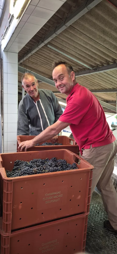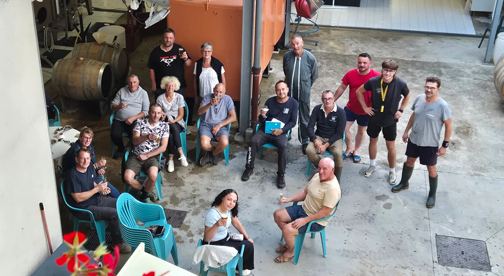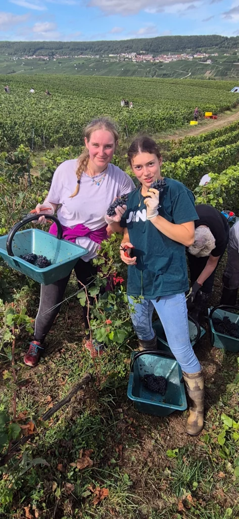 Toujours une bonne ambiance du matin au soir avec la rechercher de convivialité où se côtoient jeunes et moins jeunes. Mais aussi l’approche de montrer notre ambition qualitative pour la cueillette et le partage de notre métier de vignerons.